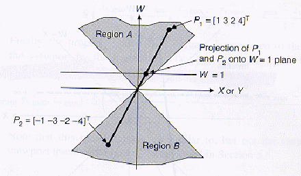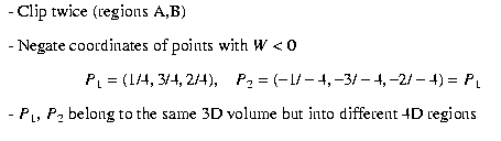 Clipping must be done in homogeneous coordinates to ensure correct results. This type of clipping is typically